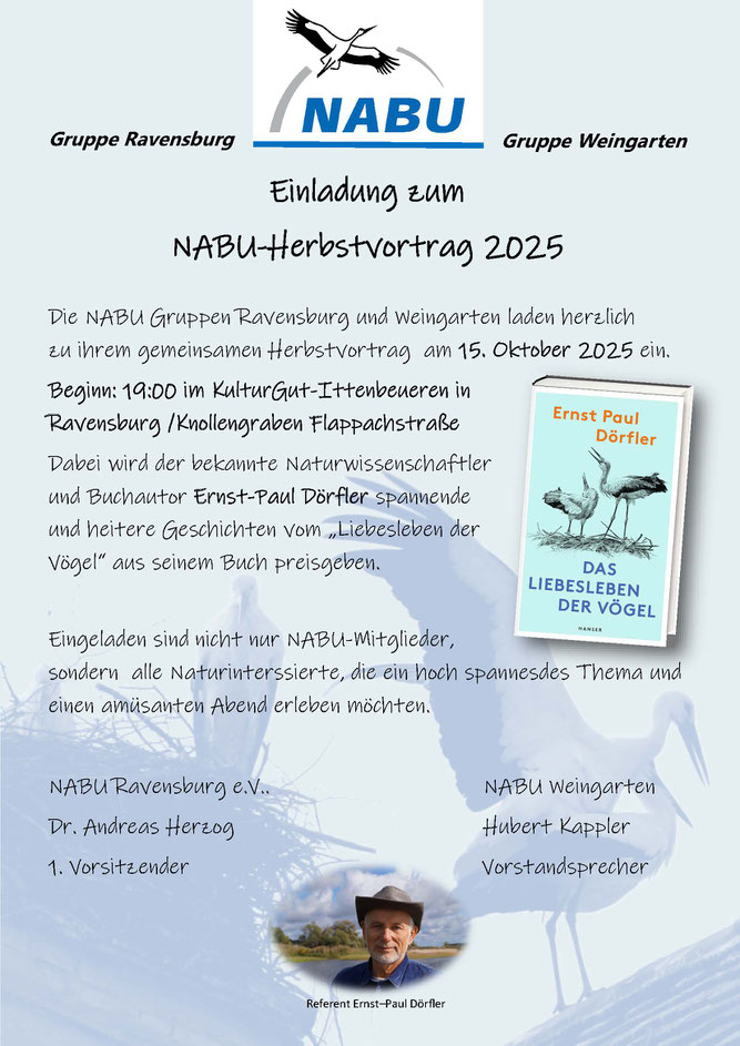 Die NABU Gruppen Ravensburg und Weingarten laden alle Intressierten herzlich ein.